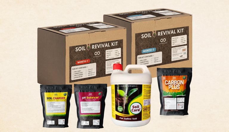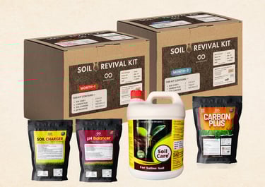 Revive your degraded land with our newly developed Soil Revival Kit, a comprehensive organic solution crafted to restore alkaline, saline, and lifeless (dead) soils. This specially formulated kit works to rebalance soil pH, replenish lost organic matter, and reactivate essential microbial activity. By improving soil structure, enhancing moisture retention, and unlocking vital nutrients, the Soil Revival Kit transforms unproductive soil into fertile ground ready for cultivation. Farmers using this kit can expect better root development, increased crop vigor, and a significant reduction in the need for chemical fertilizers. The Soil Revival Kit is your path to reclaiming damaged soils and ensuring long-term agricultural sustainability.