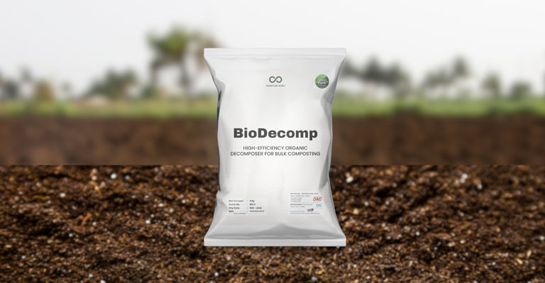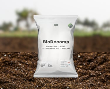 High-Efficiency Organic Decomposer for Bulk Composting. BioDecomp is a powerful, all-natural decomposer specially formulated to accelerate the breakdown of large volumes of agricultural and industrial organic waste. Designed for bulk composting, it delivers rapid and effective results on sugarcane trash, mushroom waste, and sugar factory waste, transforming them into rich organic compost within just 21 to 25 days.