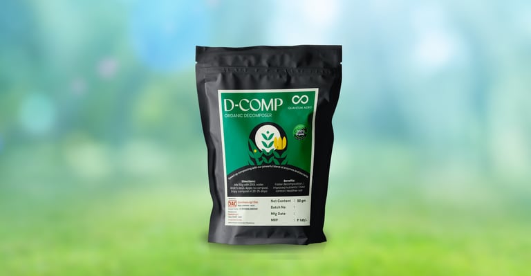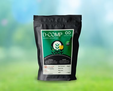 Organic Waste Decomposer for Rapid Composting and Soil Revival D-Comp is a natural, fast-acting decomposer specially formulated to accelerate the breakdown of organic waste and crop residues. By enhancing microbial activity, it transforms plant matter into rich, nutrient-dense compost -supporting soil fertility and sustainable agriculture.