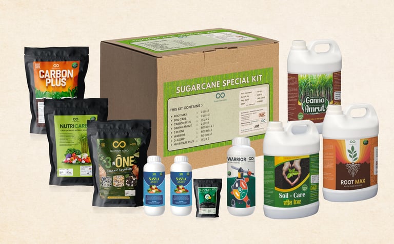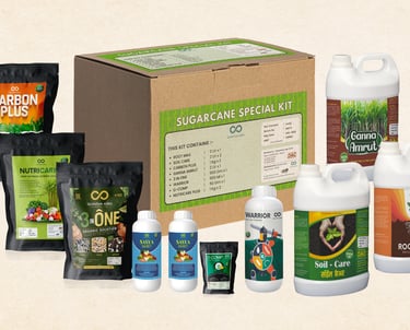 Embrace the sustainable sugarcane farming with our newly Reaserached & Developed exclusively for Sugarcane crop. Our Sugarcane kit contains Organic inputs for improving soil health, Crop overall growth. By using our Sugarcane kit farmers can save on the cost of production. Our Sugarcane kit is designed to enhance the growth, health & increases the sugarcane yield up to 20 % to 25%. Our Sugarcane kit improves the soil fertility and crop productivity. By using the Sugarcane kit, we can reduce the application of fertilizers