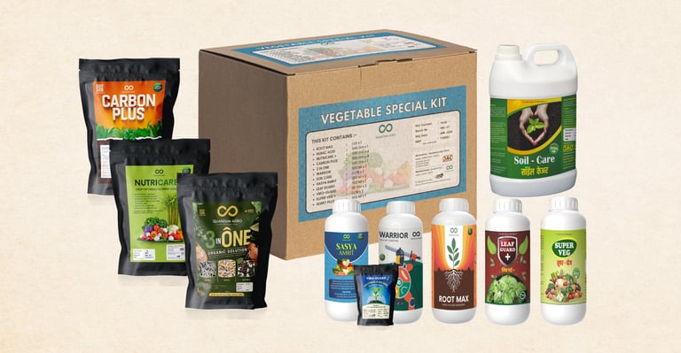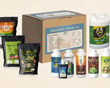 Embrace sustainable vegetable farming with our newly Researched & Developed kit exclusively for vegetable crops. Our Vegetable Kit contains carefully selected organic agri inputs to improve soil health and promote overall crop growth. By using our Vegetable Kit, farmers can significantly reduce the cost of production. The kit is specially designed to boost plant health and enhance vegetable yield by 20% to 25%. It not only improves soil fertility but also increases crop productivity. Regular use of the Vegetable Kit also helps reduce the dependency on chemical fertilizers.