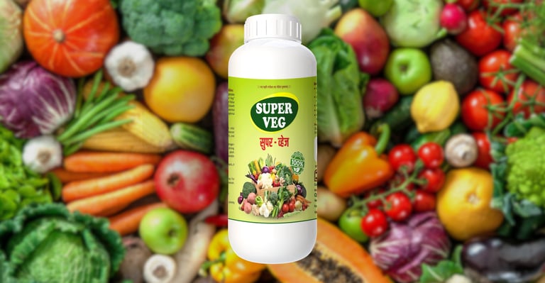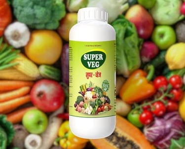 Organic Liquid Growth Promoter for Vegetables Boost the growth, health, and productivity of your vegetable crops with "Super Veg", a scientifically formulated Organic Liquid Growth Promoter designed for foliar spray application. Crafted with a premium blend of natural extracts and essential nutrients, it is 100% water-soluble for quick and efficient absorption through leaves.