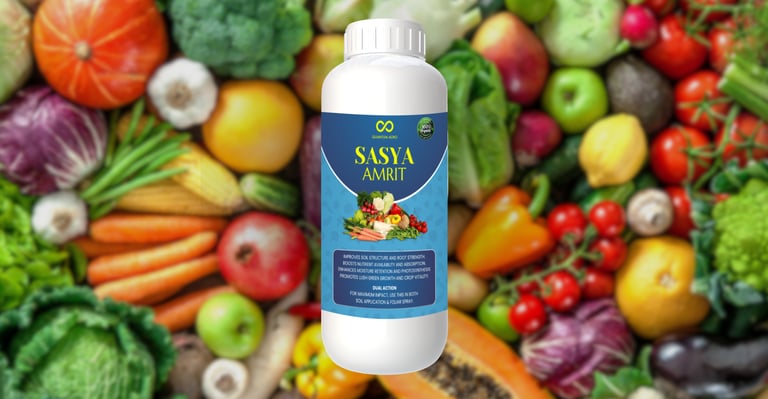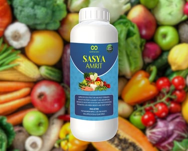 Dual-Action Organic Growth & Soil Vitality Booster Sasya Amrit is a powerful liquid formulation enriched with 18 essential amino acids, enzymes, and naturally derived, water-soluble minerals like Calcium, Potassium, Sodium, Magnesium, Zinc, Copper, Manganese, Chromium, and Selenium. This unique dual-purpose solution enhances both soil and plant health, delivering exceptional results through soil application and foliar spray.